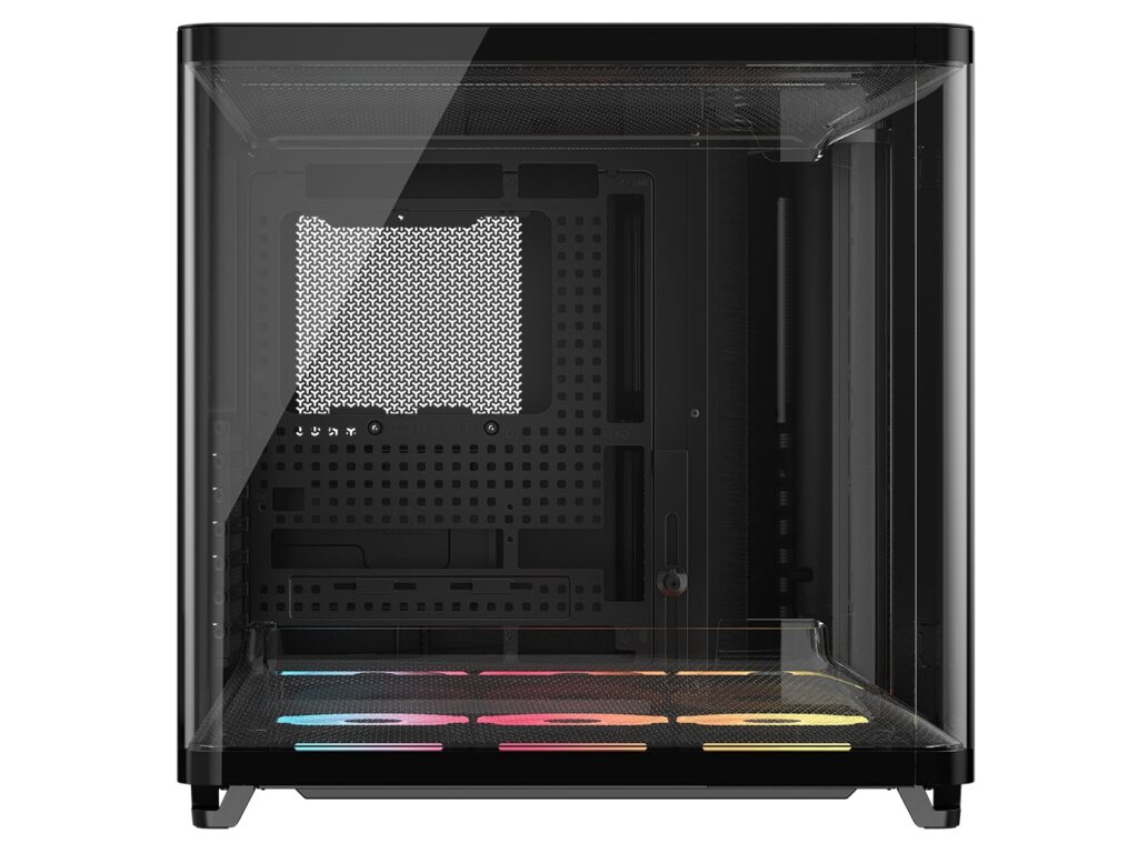 大型GPUや複数ファン構成にも柔軟に対応できる広い内部スペースを確保しています。