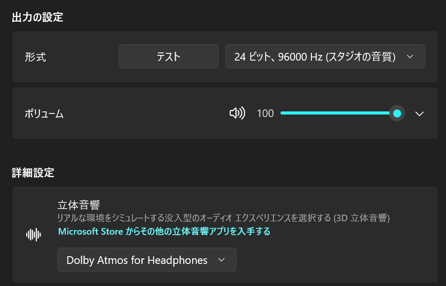 PC側で24bit/96kHzに固定し、Dolby Atmos for Headphonesをオンにしてください。この組み合わせが、M300SEの透明感とKZの解像度を最大化します。